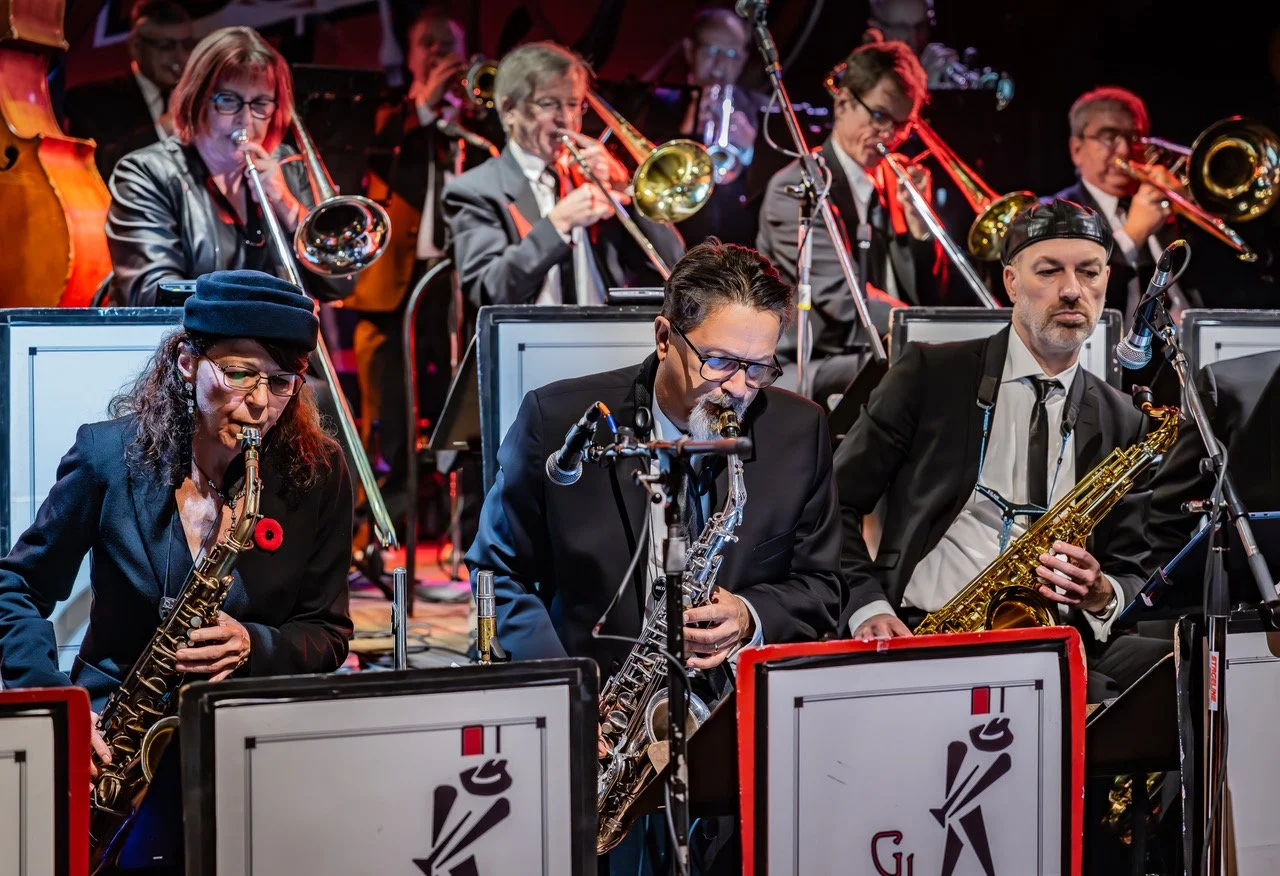 The twenty piece George Lake Big Band has thrilled audiences around the Greater Toronto Area for over a decade with their combination of sassy brass and swinging saxes coupled with fine vocals. Whether you are looking for sophisticated sounds of yesteryear or hard driving swing the George Lake Big Band can cover it. Weddings, celebrations, jazz festivals are all taken in stride by this versatile unit that has played the Metro Convention Centre, Casa Loma, the Granite Club, National Yacht Club, The Toronto Jazz Festival, Beaches Jazz Festival......well you get the idea.....everywhere! If you want to dance the George Lake Big band is the band for you as all styles are covered and in strict tempo if desired.